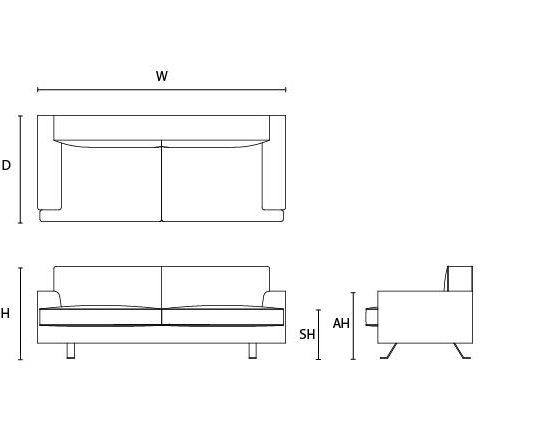 W: 210cm / D: 90cm / H: 78cm / SH: 42cm / AH: 57cm