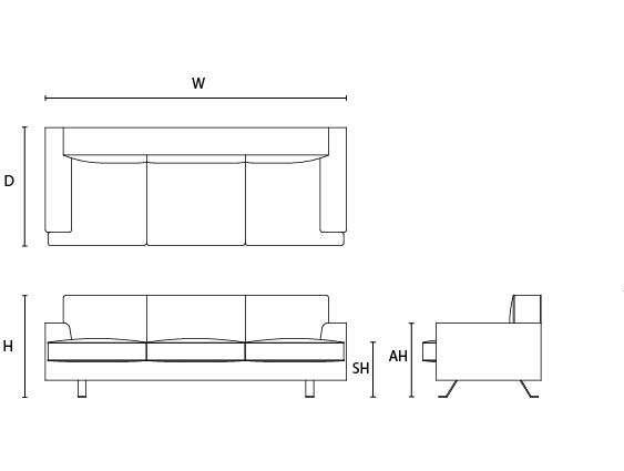 W: 230cm / D: 90cm / H: 78cm / SH: 42cm / AH: 57cm