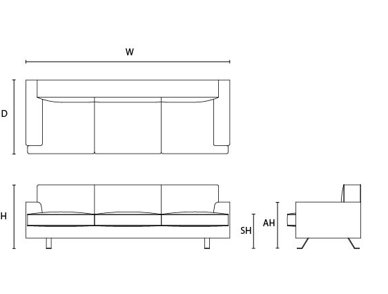 W: 250cm / D: 90cm / H: 78cm / SH: 42cm / AH: 57cm