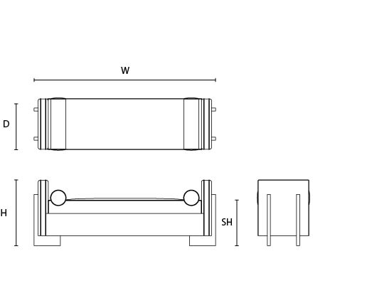 W: 180cm / D: 55cm / SH: 48cm / AH: 75cm