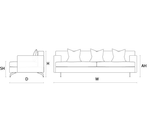 W: 235cm / D: 92cm / H: 70cm / SH: 42cm / AH: 58cm