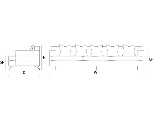 W: 260cm / D: 92cm / H: 70cm / SH: 42cm / AH: 58cm