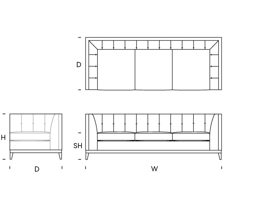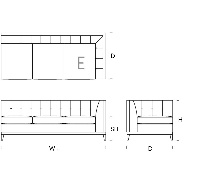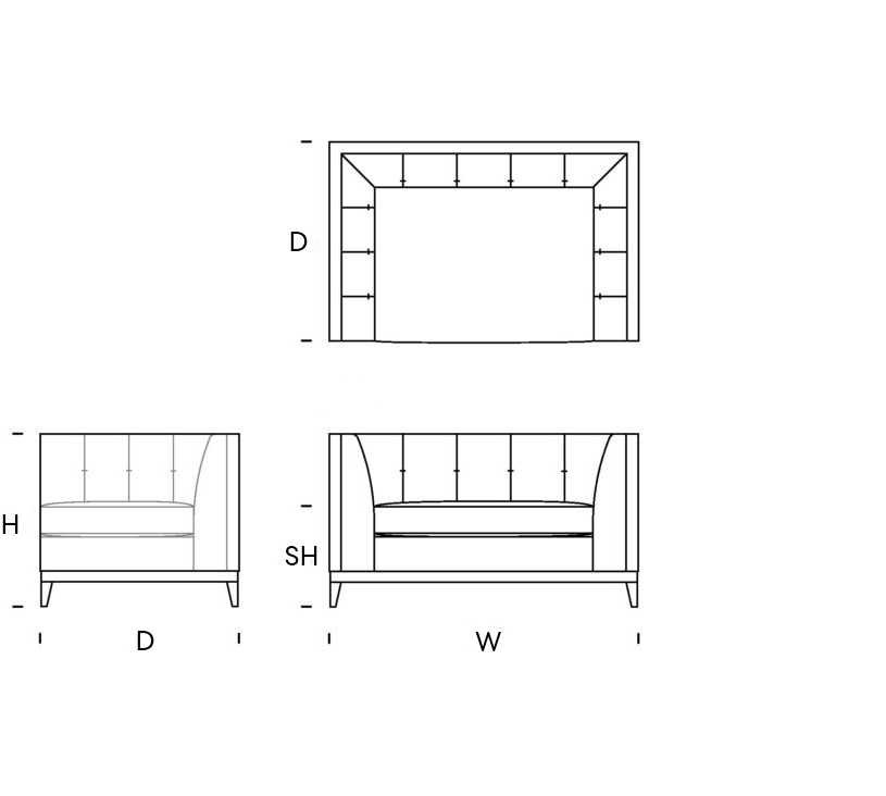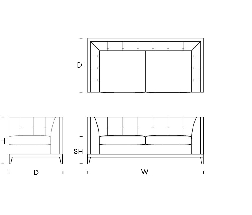 Upholstery: The Detail: Our products are finished with various sewing details to the seams, body and cushions. Our fillings and make up use Reflex Foam, Feather and Fibre, each specific to the style and comfort of the design. Products can be built to your specific comfort and finish detail - Click upholstery for options. The Construction: Solid Hardwood frames with 15year guarantee. Bodywork is fitted with high quality springs, CMHR foam/foam&feather mix/wadding.