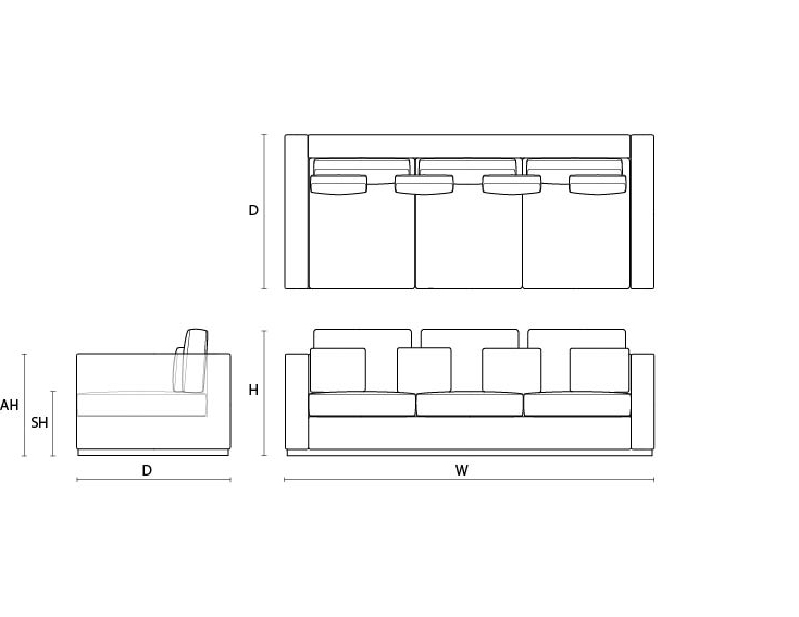 W: 240cm / D: 100cm / H: 82cm / SH: 42cm / AH: 62cm