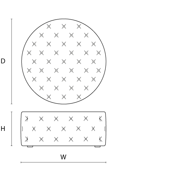 The Cambridge ottoman is a perfect example of expert craftsmanship, upholstered in a plush dove grey velvet with intricate deep buttoned detailing on both the top and sides, which gracefully compliment the pleasing round shape.