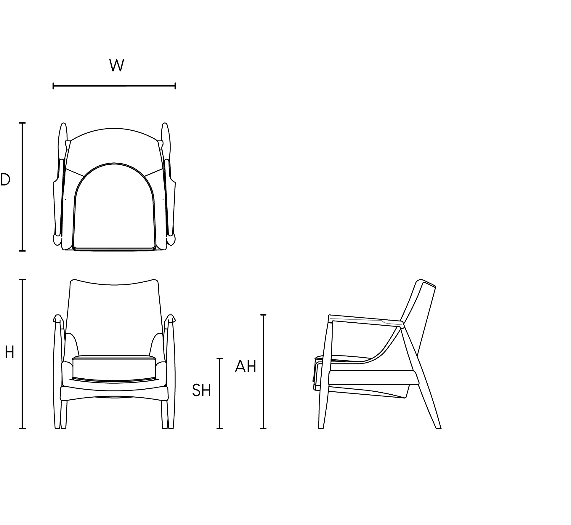 W: 80cm / D: 80cm / H: 72cm / SH: 40cm / AH: 62cm