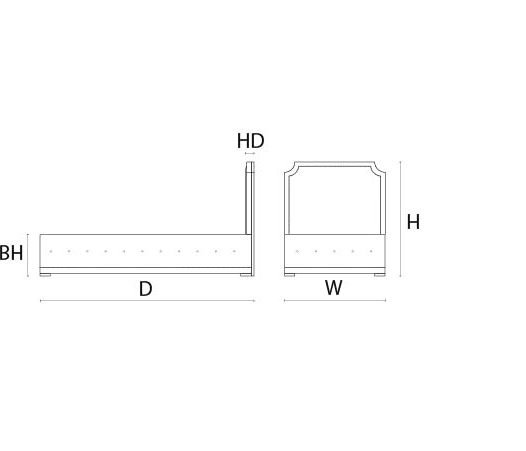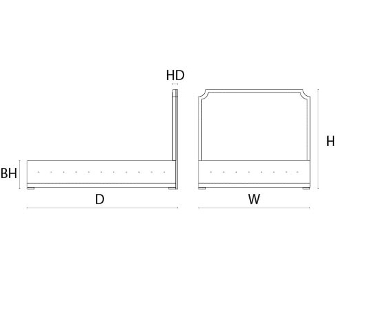 Headboard HW: 186cm / HD: 8cm / HH: 160cm Bed Base BW: 186cm / BD: 216cm / BH: 40cm