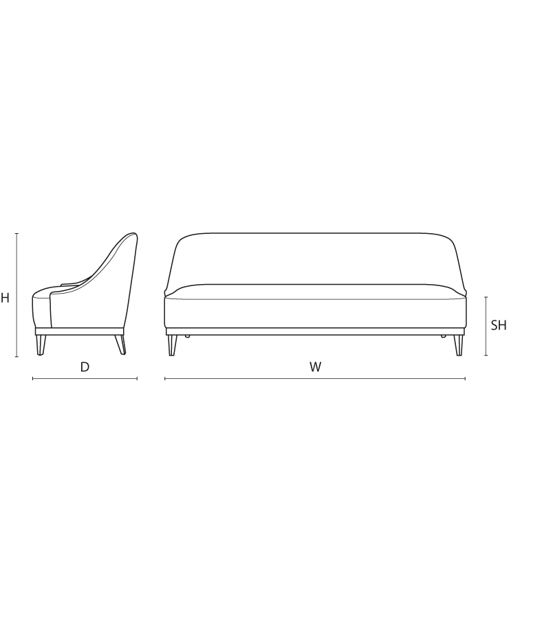 W: 205cm / D: 73cm / H: 85cm / SH: 42cm