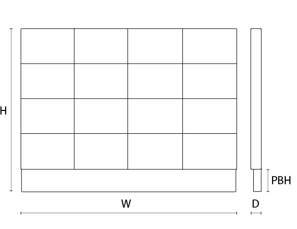 Headboard HW: 186cm / HD: 10cm / HH: 160cm