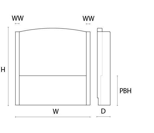 The Glastonbury small double headboard has soft minimalistic flowing lines, with boxed wings on either side. Fully upholstered in a textured metallic fabric creating a subtle yet cosy and peaceful escape.