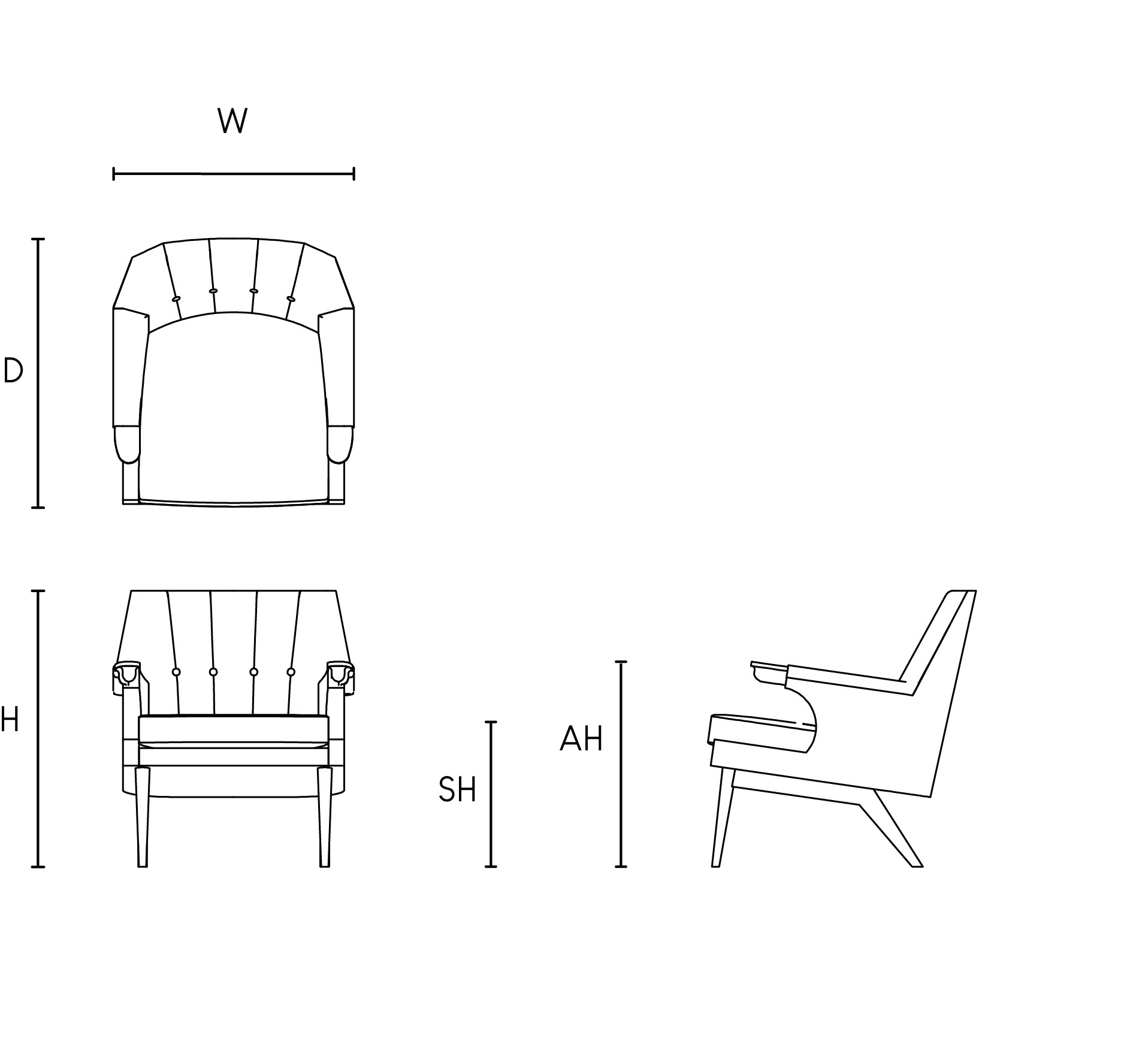 W: 71cm / D: 78cm / H: 80cm / SH: 43cm / AH: 63cm