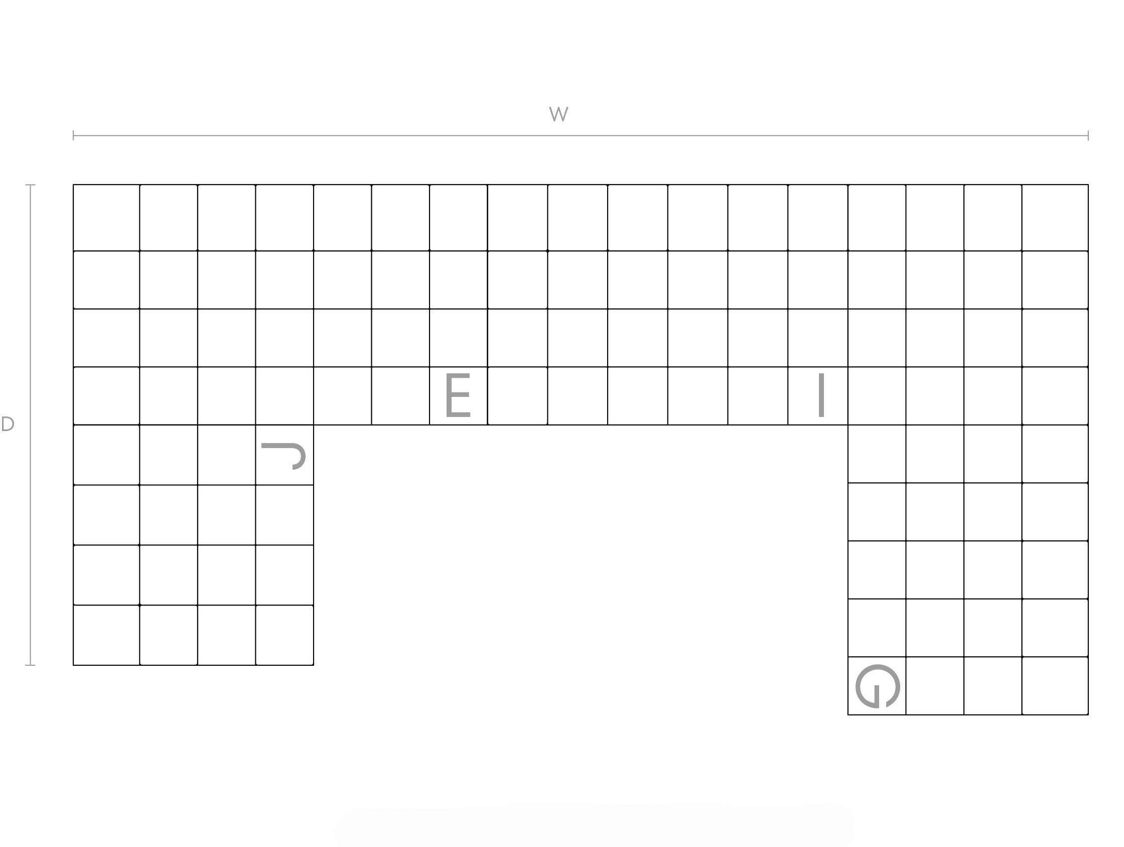 W: 550cm / D: 230cm / SH: 42cm