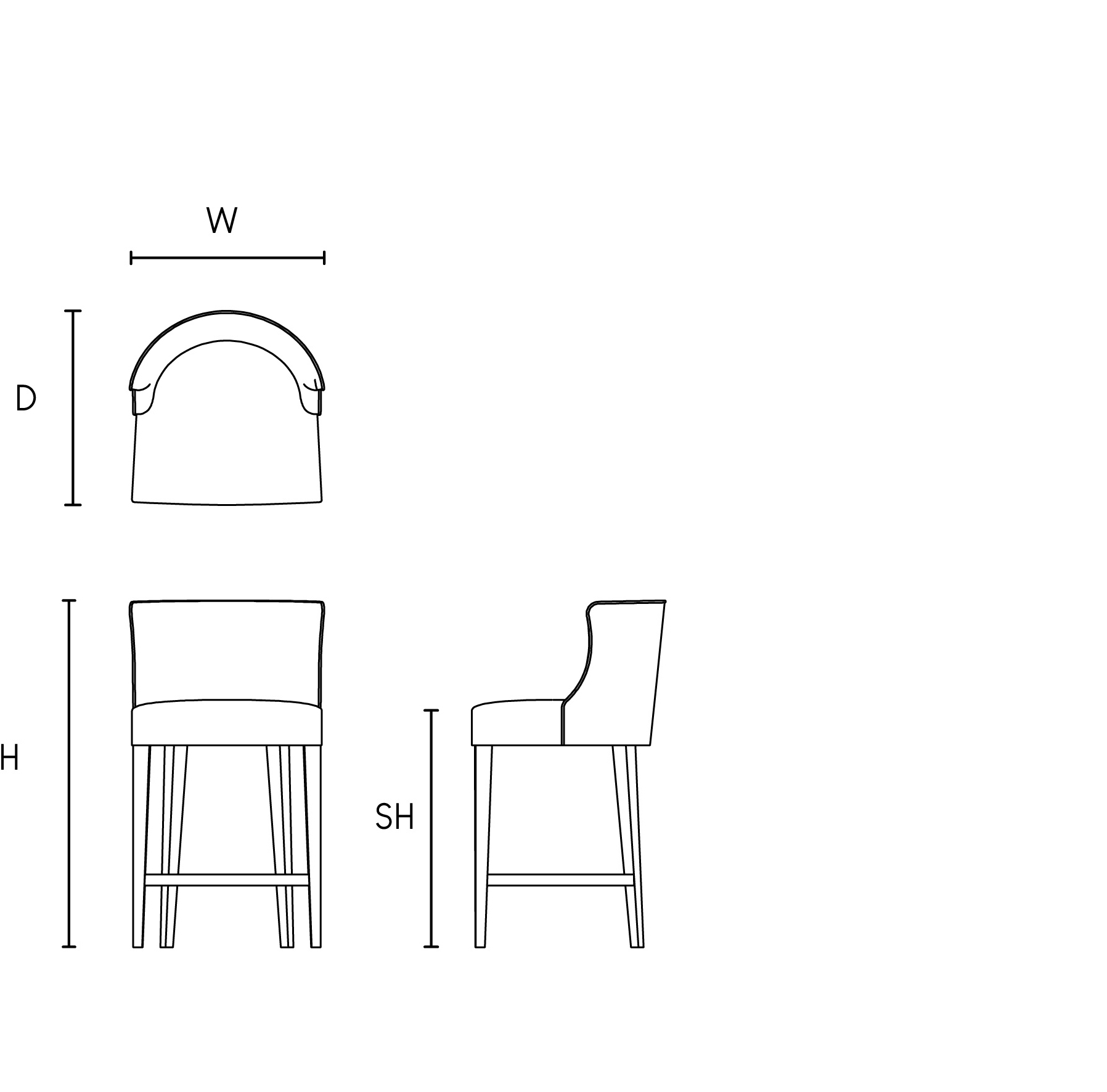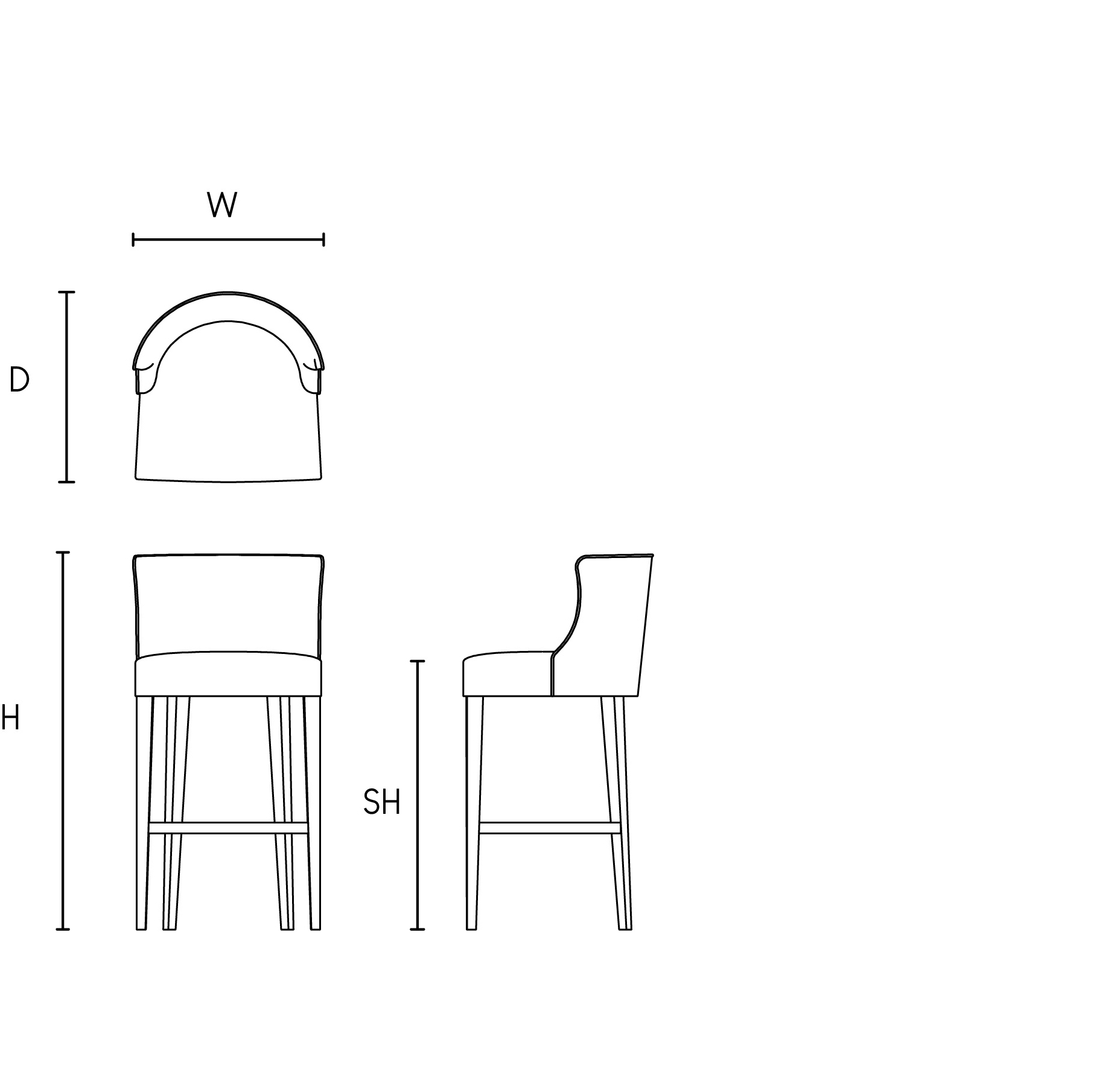 The Reeves bar stool has a classic and simple silhouette, featuring delicately tapered beech ebony ATW01 legs, with elegantly curved footrests on either side, mirroring its curved back. With refined self-piping detail around the backrest, it makes for a very beautiful statement piece.