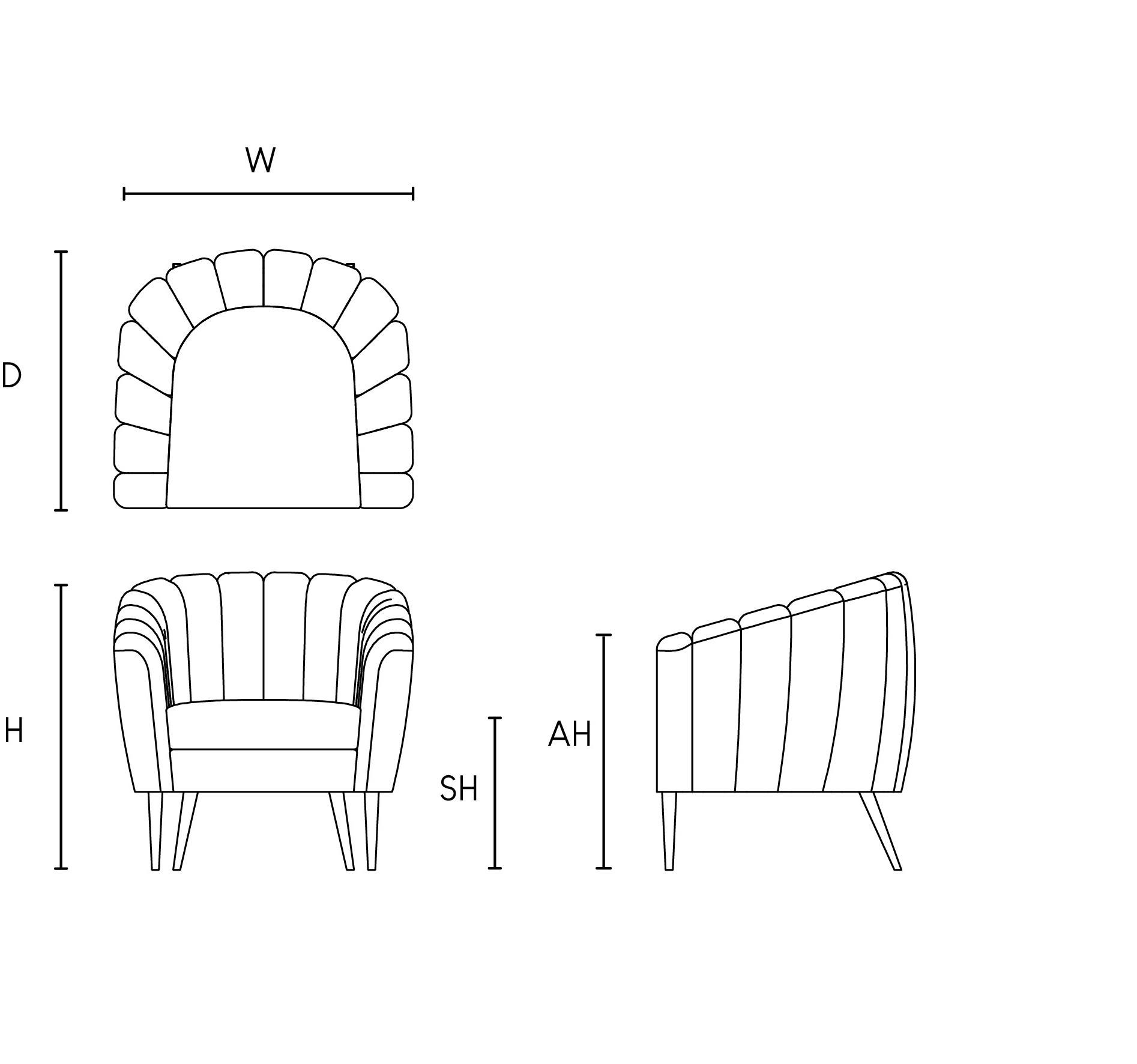 Engulf yourself in tranquil comfort and peace with the Tillie. A neutral velvet occasional chair with decorative stitching to create a fluted, mid-century look, with tapering wooden pegs lifting the base.