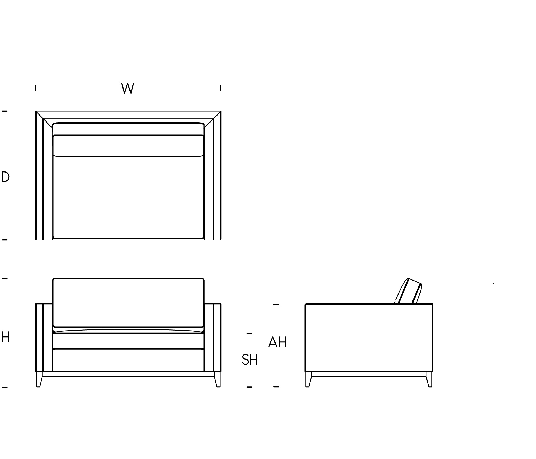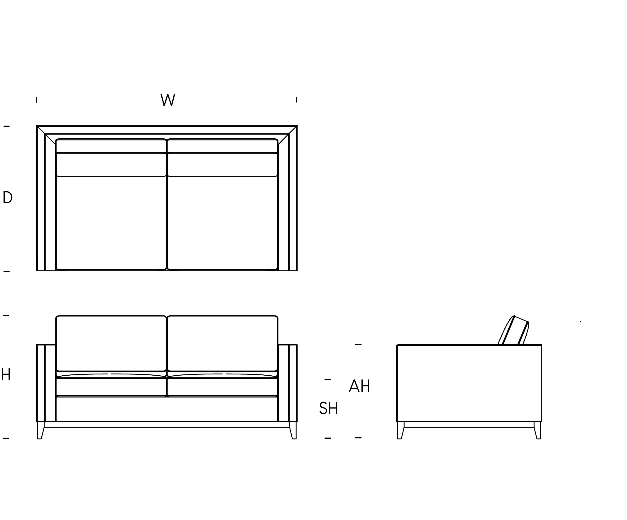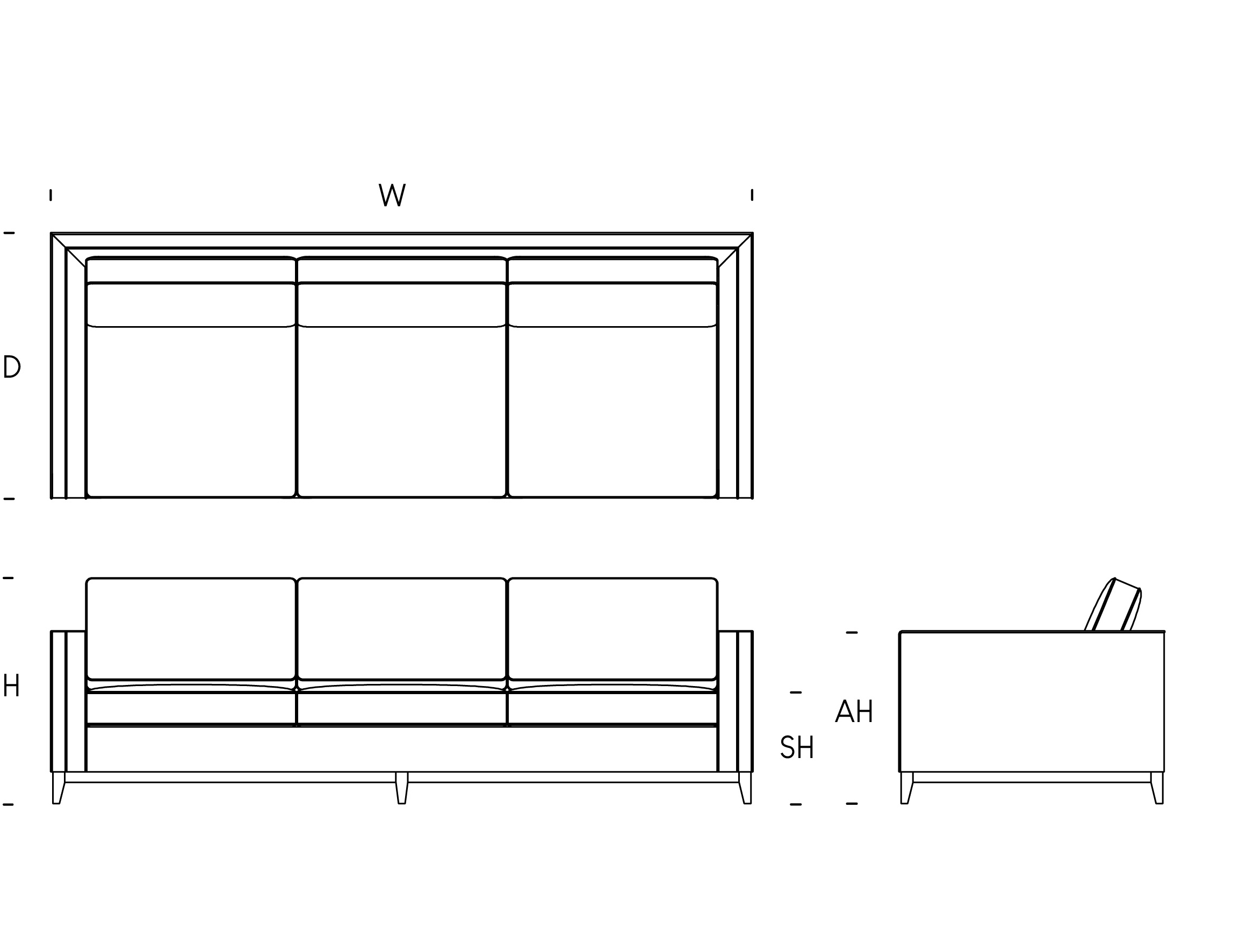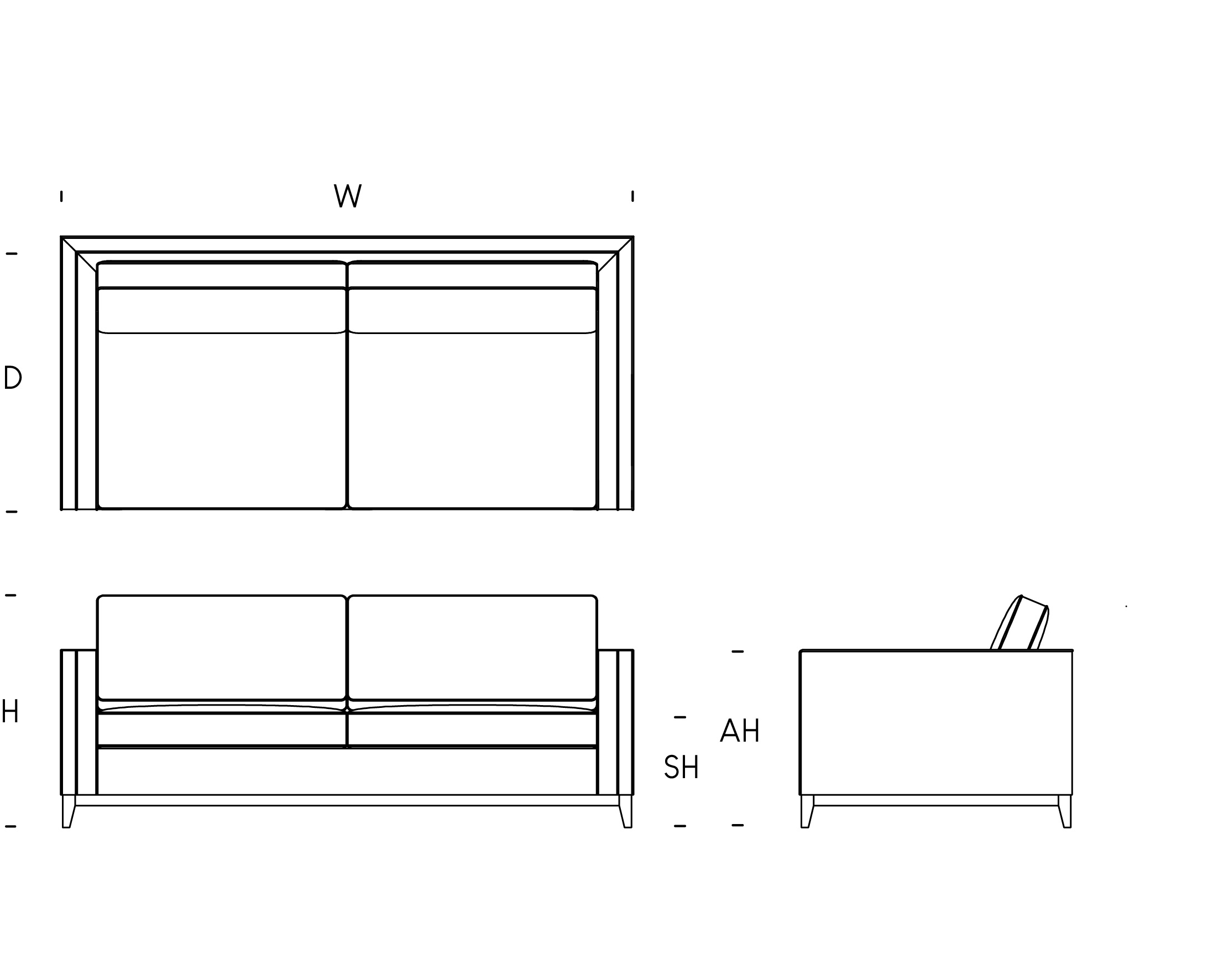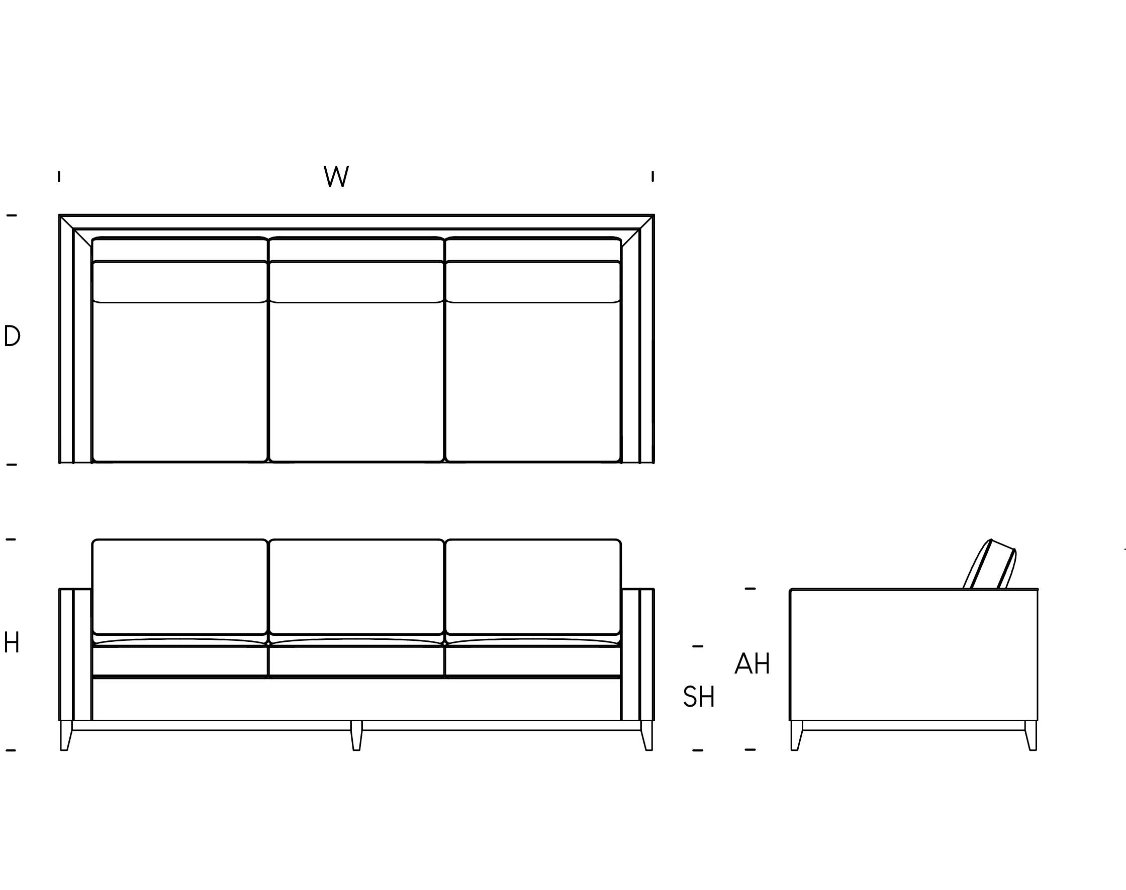 W: 210cm / D: 100cm / H: 85cm / SH: 42cm / AH: 70cm