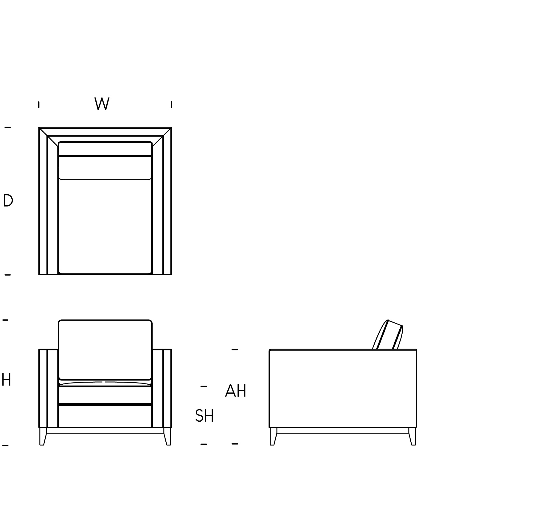 W: 90cm / D: 100cm / H: 85cm / SH: 40cm / AH: 70cm